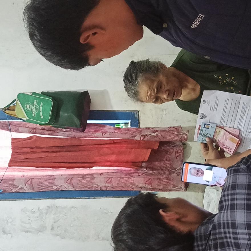 Penyaluran bantuan sosial secara home visit oleh petugas dilakukan kepada warga Desa Gintungreja yang tidak bisa hadir untuk mengambil secara langsung di Balai Desa Gintungreja.