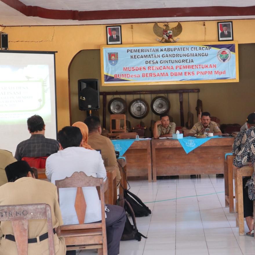 Musyawarah Desa Gintungreja membahas tentang Rencana Pembentukan BUMDesa Bersama DBM EKS PNPM Mpd.