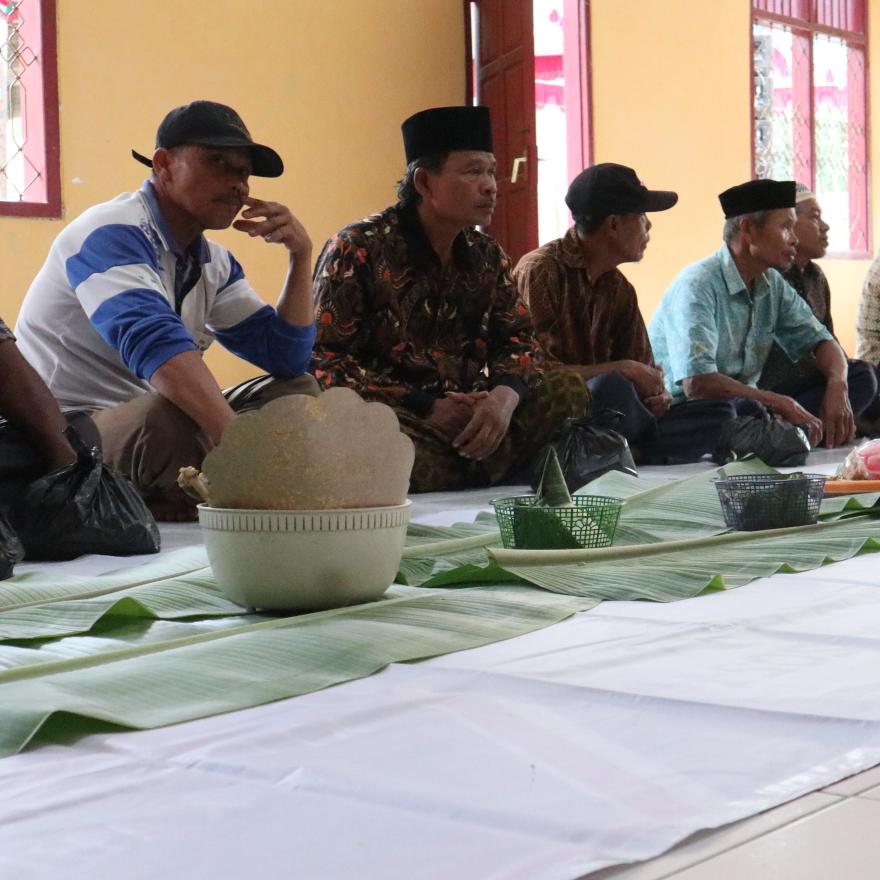 Setelah memberikan sambutan, beliau juga mengikuti acara tasyakuran dengan khidmat hingga acara selesai.