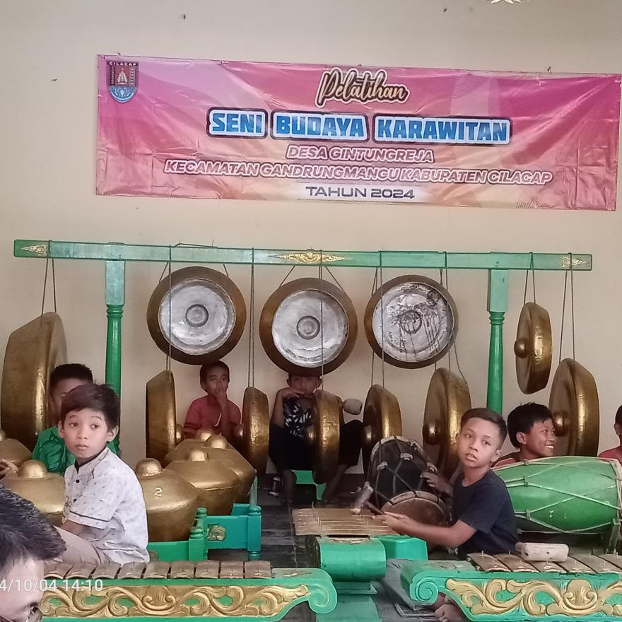 Tingkatkan Seni Budaya, Pemerintah Desa Gintungreja mengadakan Pelatihan Seni Budaya Karawitan sejak dini kepada pelajar tingkat Sekolah Dasar ( SD ) pada ,Selasa tanggal, 01 Oktober s/d 12 November 2024 di Aula Desa Gintungreja.