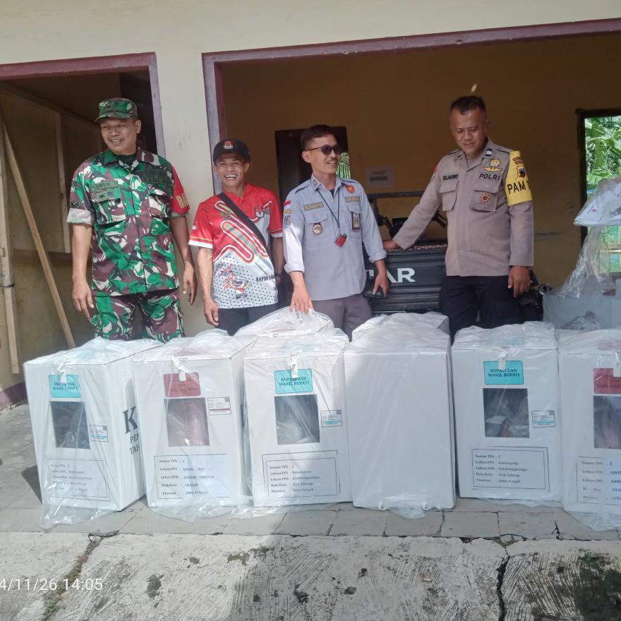 Pantau kesiapan TPS dalam pelaksanaan Pilkada Gubernur dan Bupati tahun 2024, Camat Gndrungmangu bersama jajaran dan Pemerintah Desa Gintungreja monitoring secara langsung pendistribusian kotak suara dan perlengkapan TPS pada Selasa, 26/11/2024.