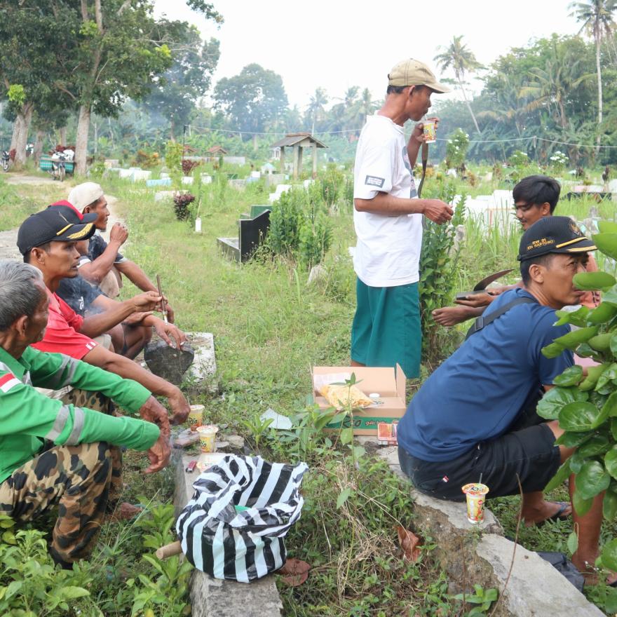 Selain bersih di lingkungan pemukiman warga team Jum'at bersih melanjutkan bakti sosial membersihkan Tempat Pemakaman Umum ( TPU ) yang ada, dengan cara menyemprot rumput agar mati nantinya, selain itu kami dibantu sejumlah mahasiswa membersihkan Tempat pemakaman supaya agar lebih bersih dan sesp dipandang mata, ungkapnya