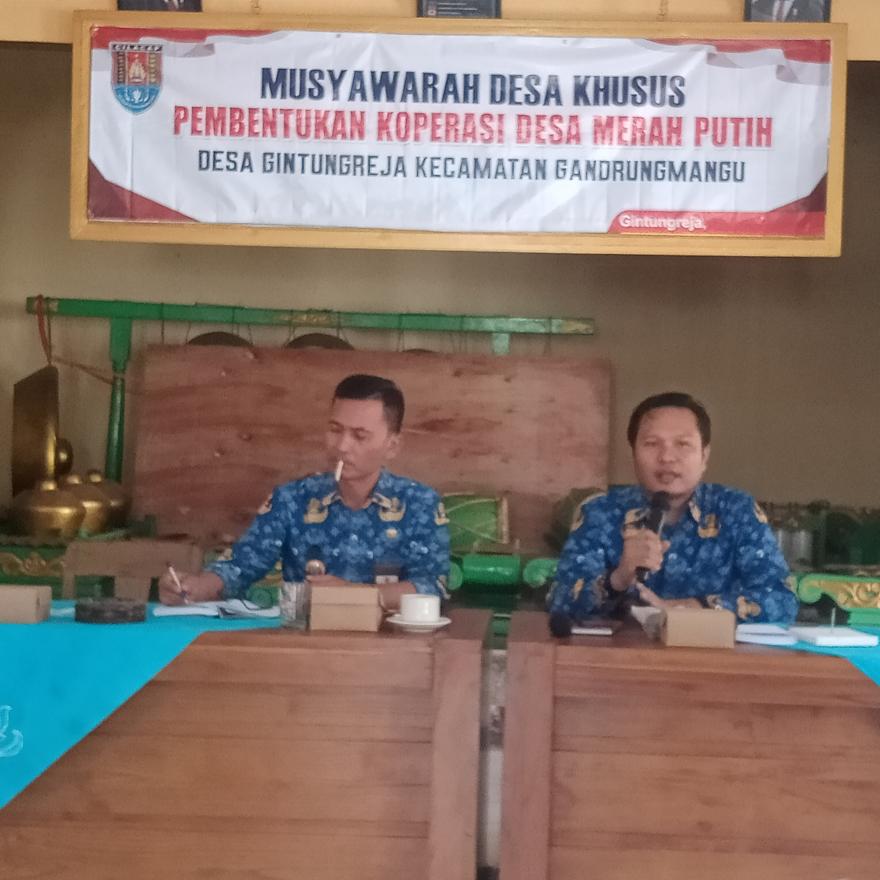 Gintungreja – Pemerintah Desa Gintungreja Kecamatan Gndrungmangu, menggelar Musyawarah Desa Khusus (Musdesus) dalam rangka pembentukan Koperasi Desa Merah Putih. Kegiatan ini berlangsung pada Selasa, 20 Mei 2025, bertempat di Pendopo Desa setempat