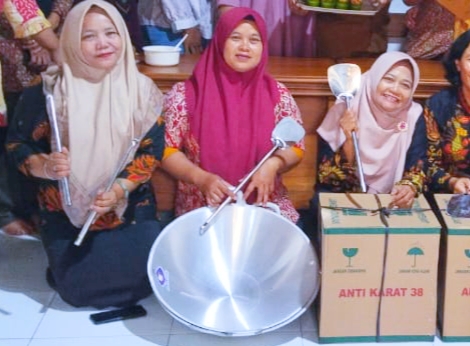 Sejumlah TP-PKK dan Kader Posyandu Desa Gintungreja terlihat sangat gembira setelah menerima oleh-oleh berupa perabotan alat pembuat kue dari DINASKERIN Kabupaten Cilacap. Peralatan tersebut antara lain oven dan wajan, yang sangat berguna untuk membuat kue-kue lezat.